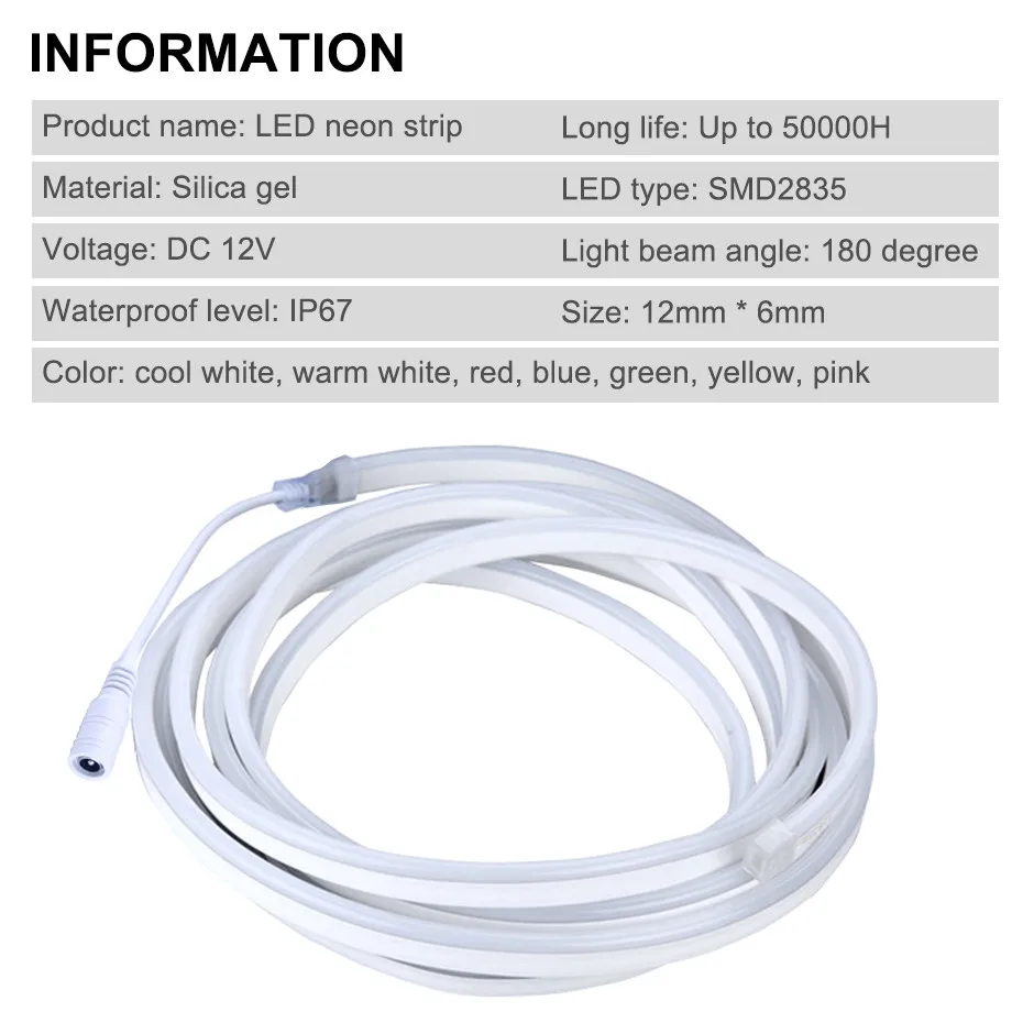 Led Strip 12V Waterproof 2835SMD 120Leds/m Ribbon Led Neon Light IP67 White/Warm White/Red/Green/Blue/Pink/Yellow Led Tape Light : Click Here Waterproof Led Neon Light Tape 12V Touch Dimming EU US Power Adapter IP67 LED Ribbon Strip Light Flexible Neon Lights Tape 1m-5m : Click Here LED Neon Light Lamp 220V 2835SMD Flexible Neon Strip Light 1m-20m Christmas Lights Tape Home Outdoor DIY Decor Lighting Ribbon : Click Here